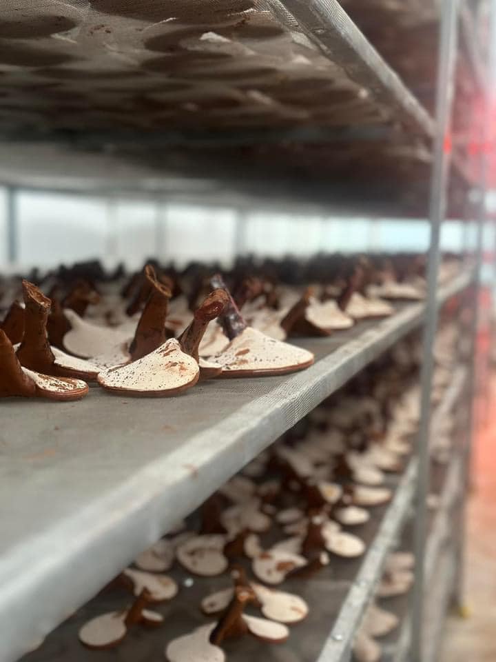 Thu hoạch đúng 'thời điểm vàng' khi lớp bào tử dày nhất. Quy trình hái thủ công 100% để đảm bảo nấm không bị gãy vỡ, trầy xước.